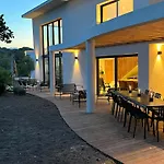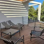 A Cupulata Villa Zonza ligt slechts 1 km van het strand San Ciprianu en nodigt gasten uit om te ontspannen op een terras.